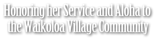 She was so proud of Waikoloa Village. Even in hard times, her love of the Community never wavered. Her mission was clear. She made residents, visitors--and even strangers--feel welcome and comfortable... as if they were ohana (family). Regardless of circumstances, she was "there," helping others.